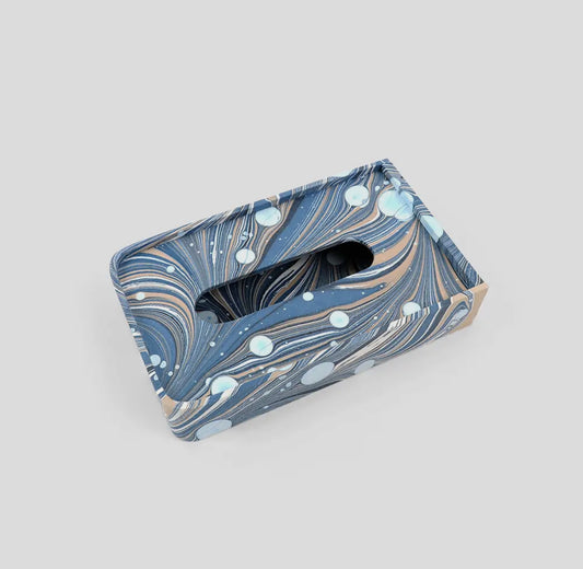 Marbled Rectangular Tissue Box - Fire Whirl Blue
