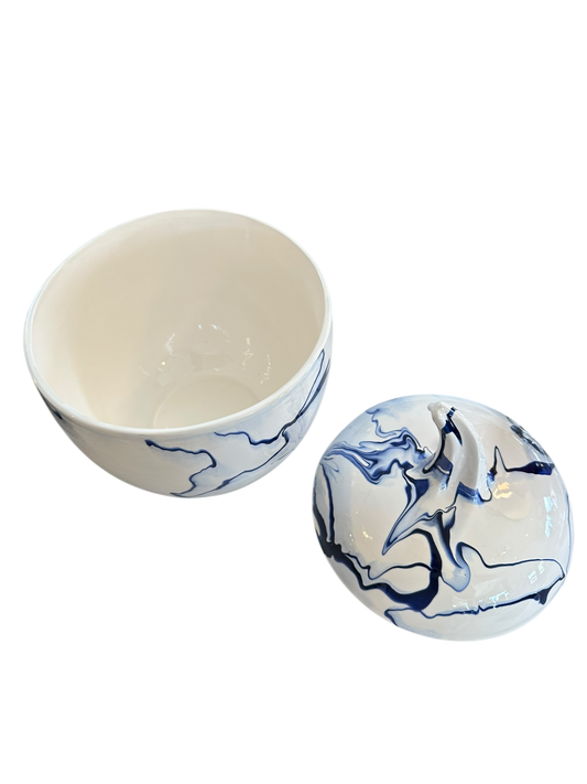 Lidded Gourd with Stem in Delft Blue Marble