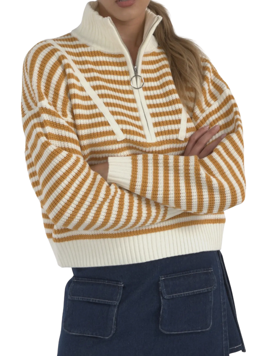 Half Zip Striped Sweater - Two Colors!