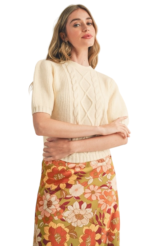 Cable Knit Short Sleeve Sweater - 3 Colors!