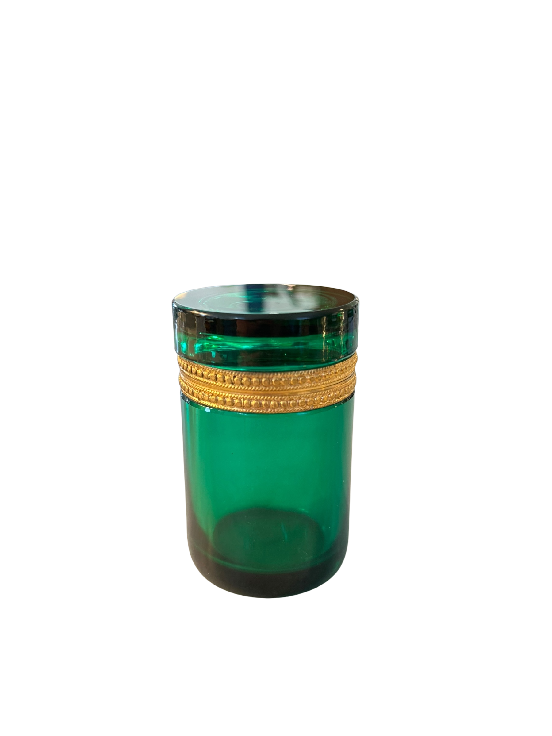 Antique Opaline Glass Box - Green Cylindrical