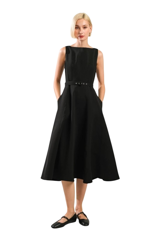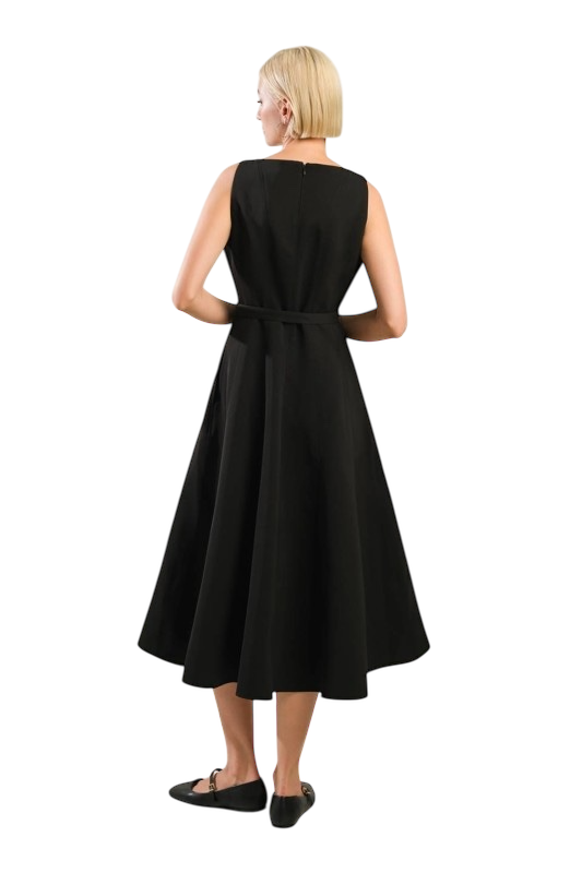 Belted Midi Dress - Black