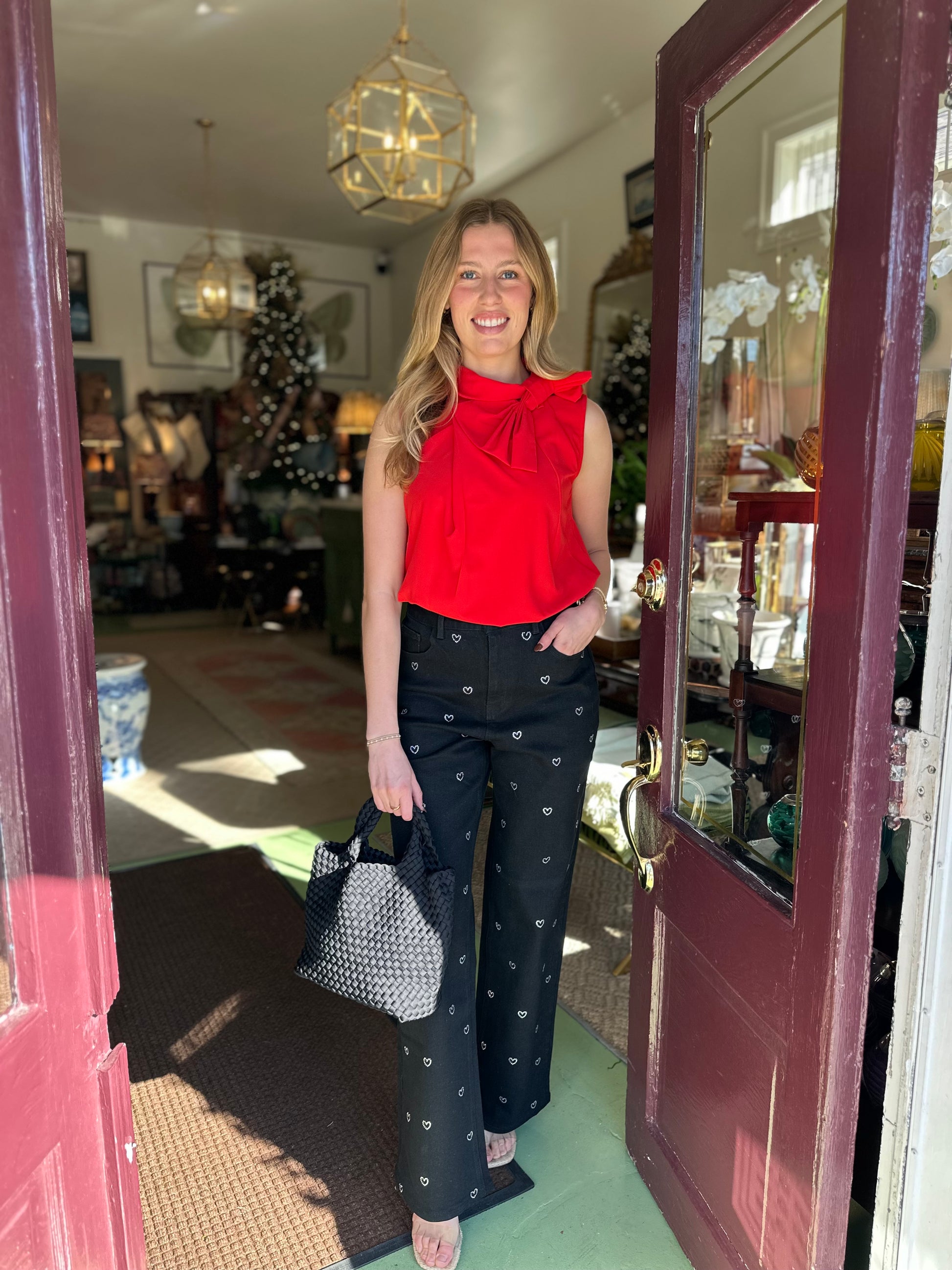Bow Detail Sleeveless Blouse - Red