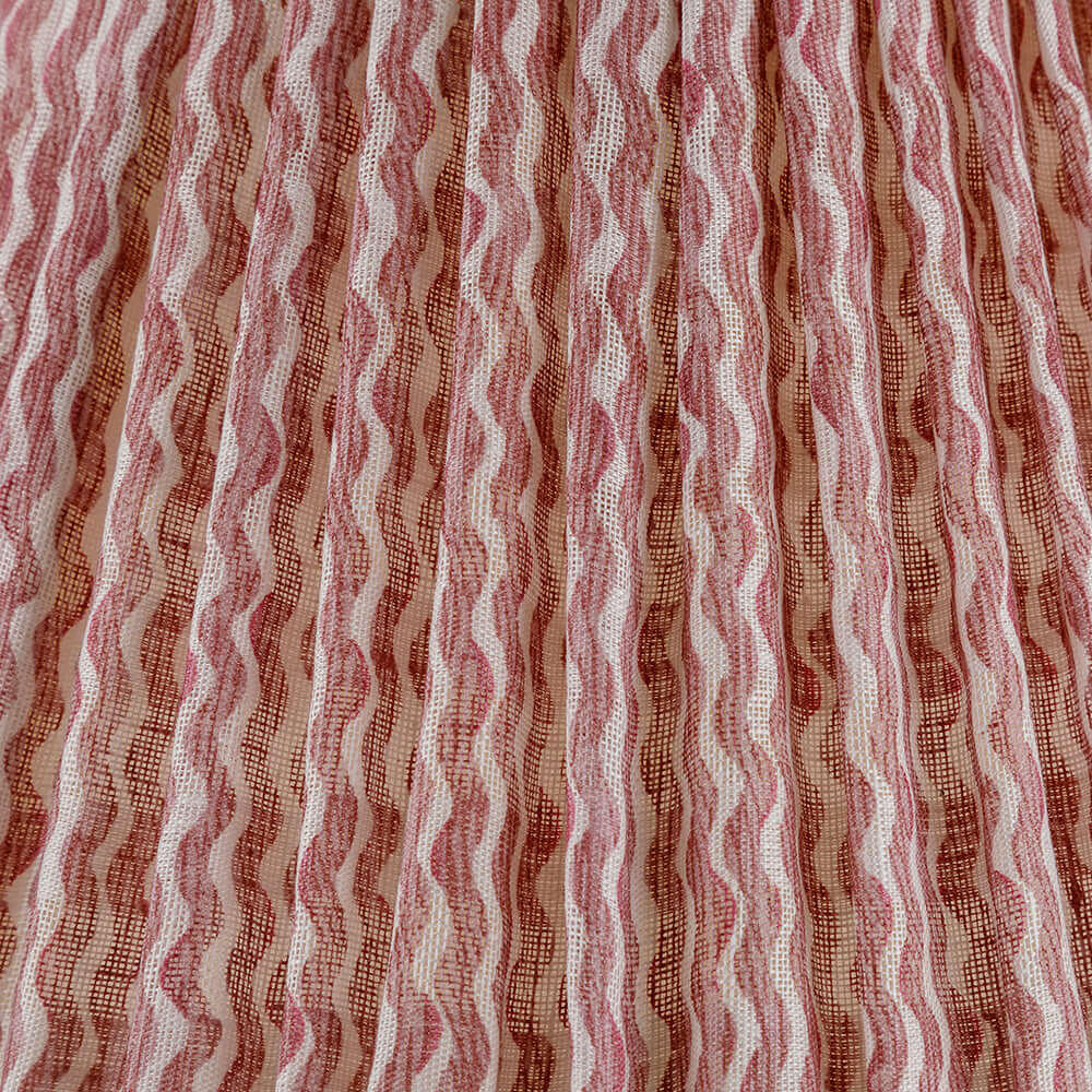 A colored, patterned empire lampshade, made in Fermoie Popple fabric in pink.