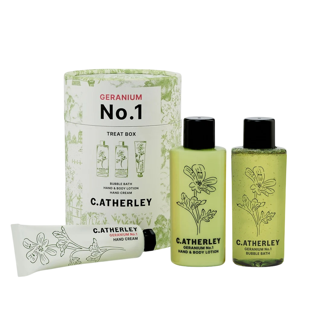 The Treat Box set is a delightful collection of three travel size scented bodycare essentials: a luxurious bubble bath, a lightweight hydrating hand & body lotion and a ceramide-rich conditioning hand cream.