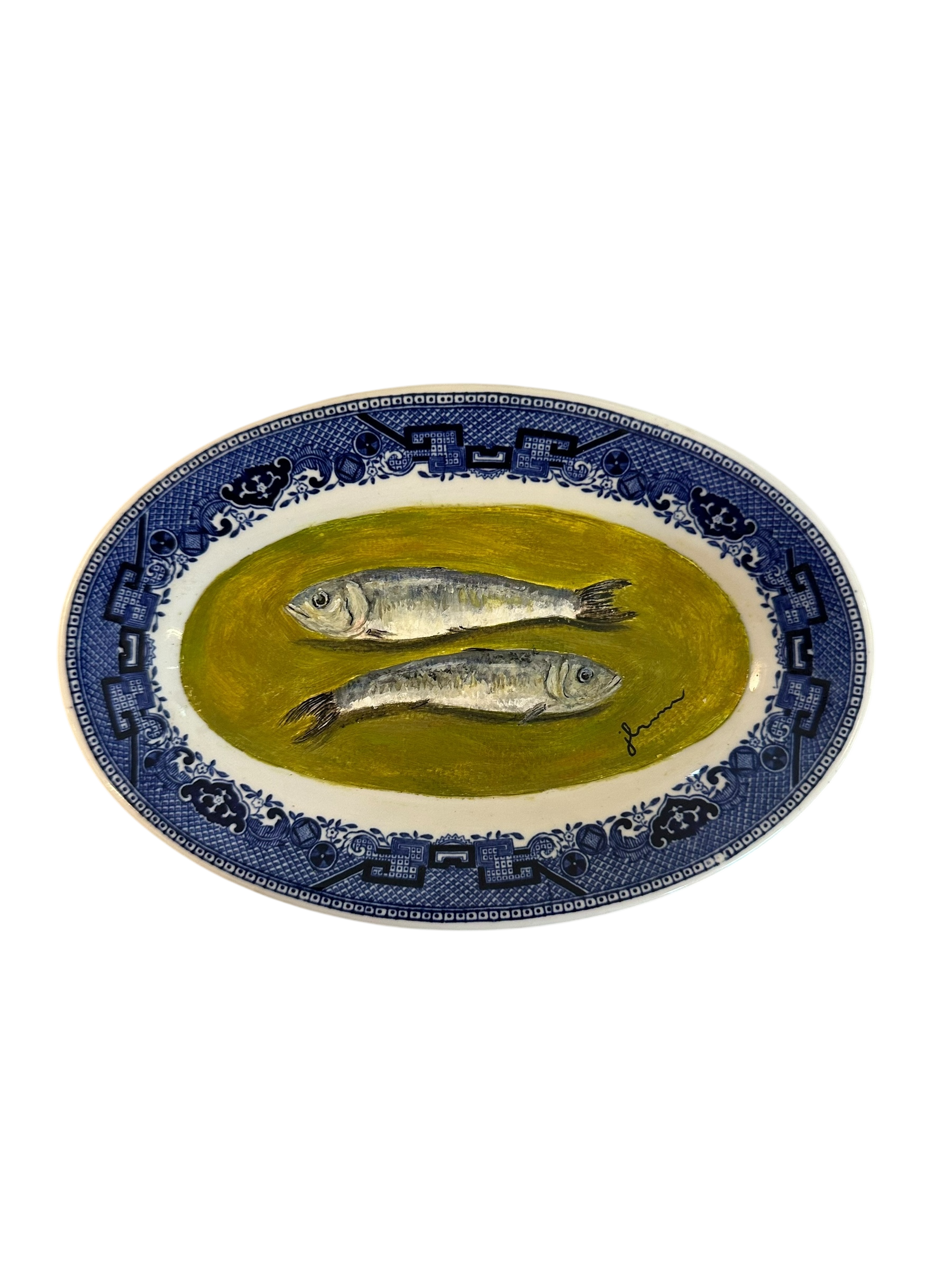 Jenn Leverett Art - Oval Sardines on Blue Willow