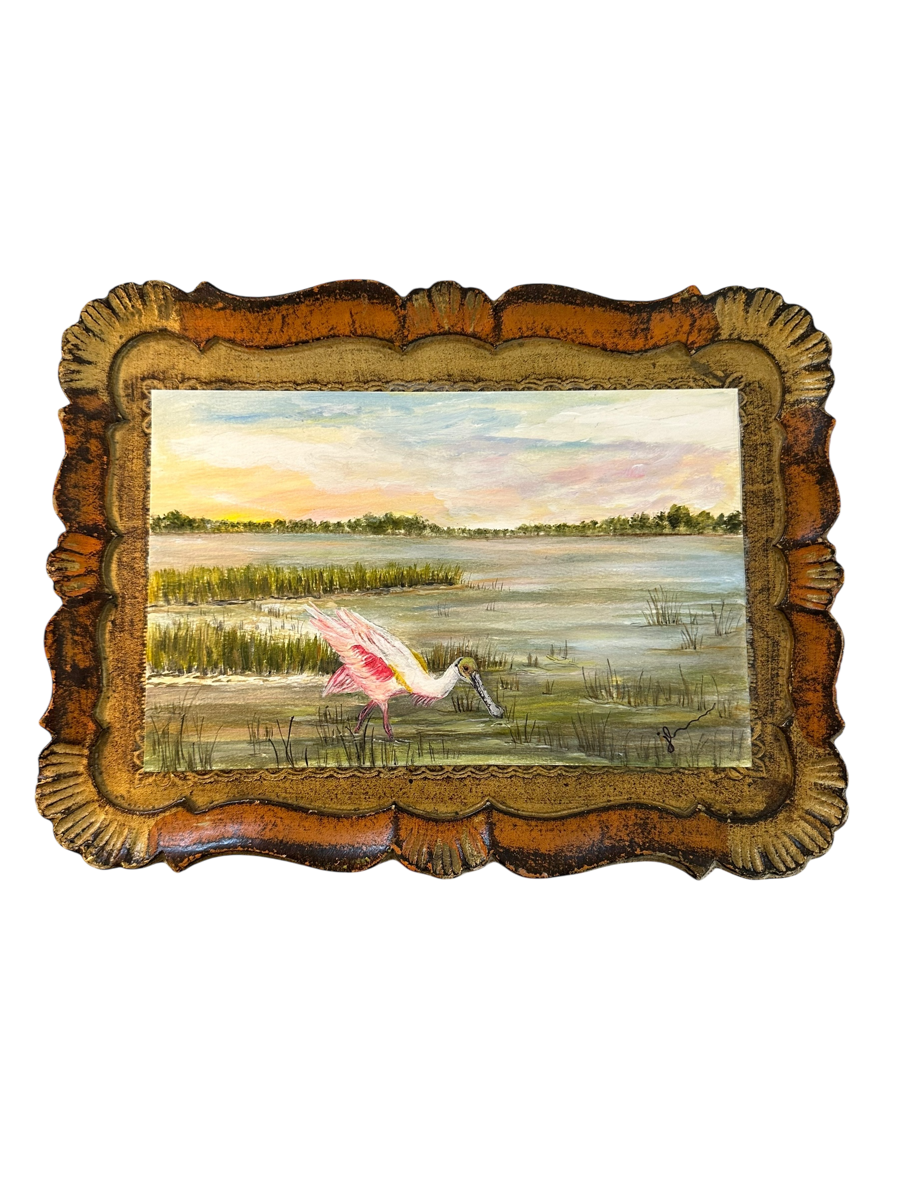 Jenn Leverett Art - Spoonbill on Rectangular Florentine