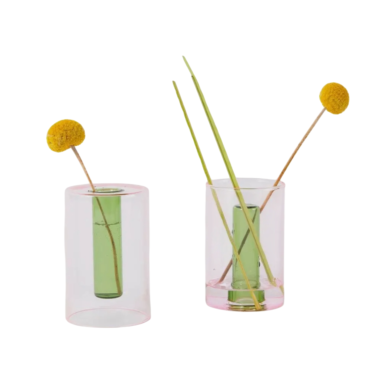The dual-purpose glass vase allows you to make the most of your posy. As flowers start to fade, flip to breathe new life into the remaining stems creating a beautiful glass bud vase.