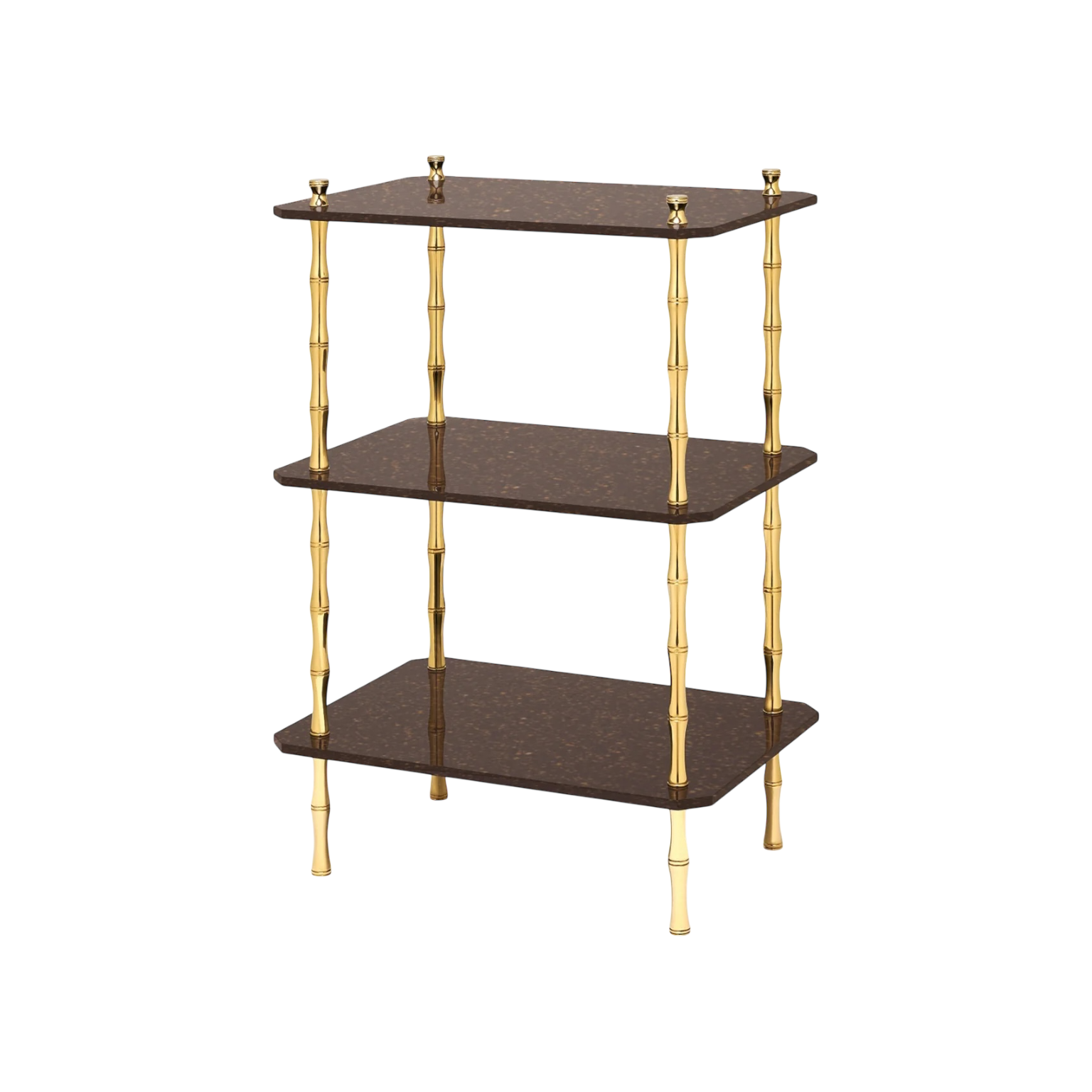 Handmade high gloss lacquer three tier side table with brass bamboo style legs.