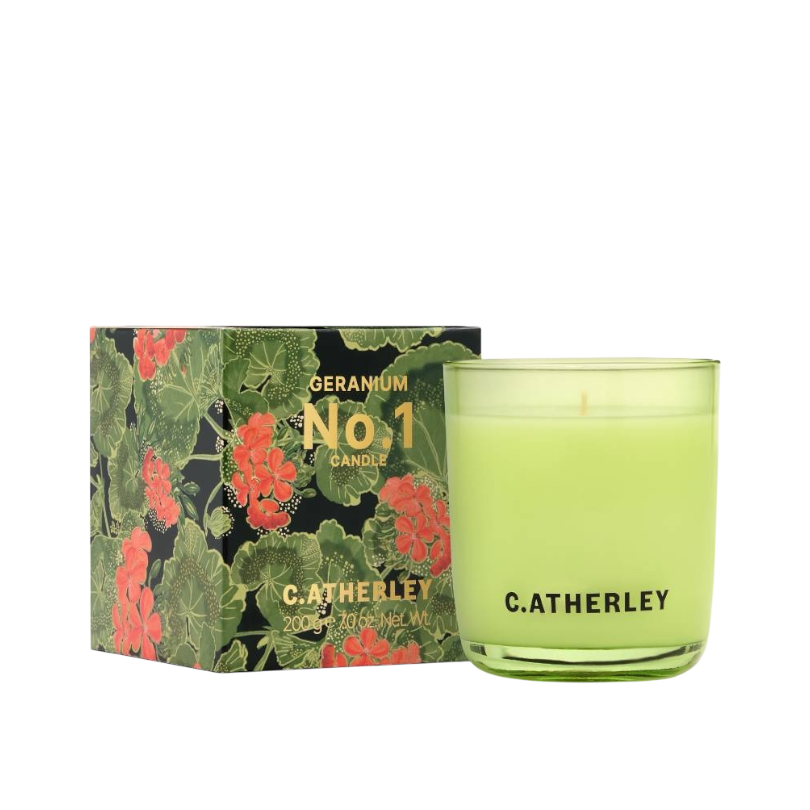 Our beloved Geranium No.1 Candle now comes in special limited-edition packaging featuring vibrant red geraniums on a deep green background with gilt foil lettering, extended by popular demand.