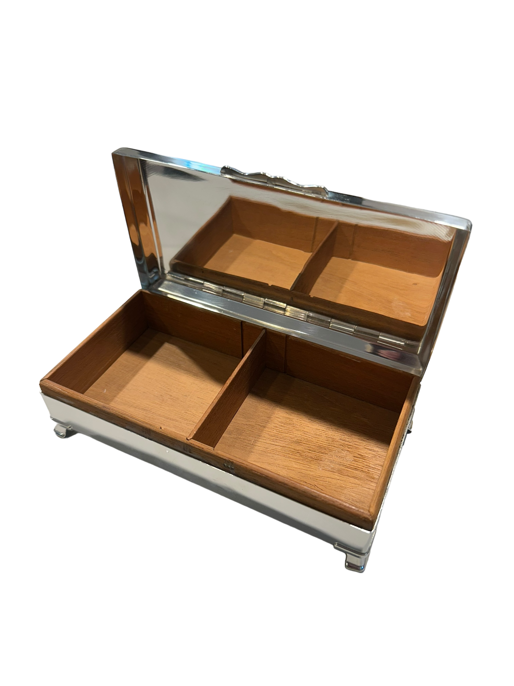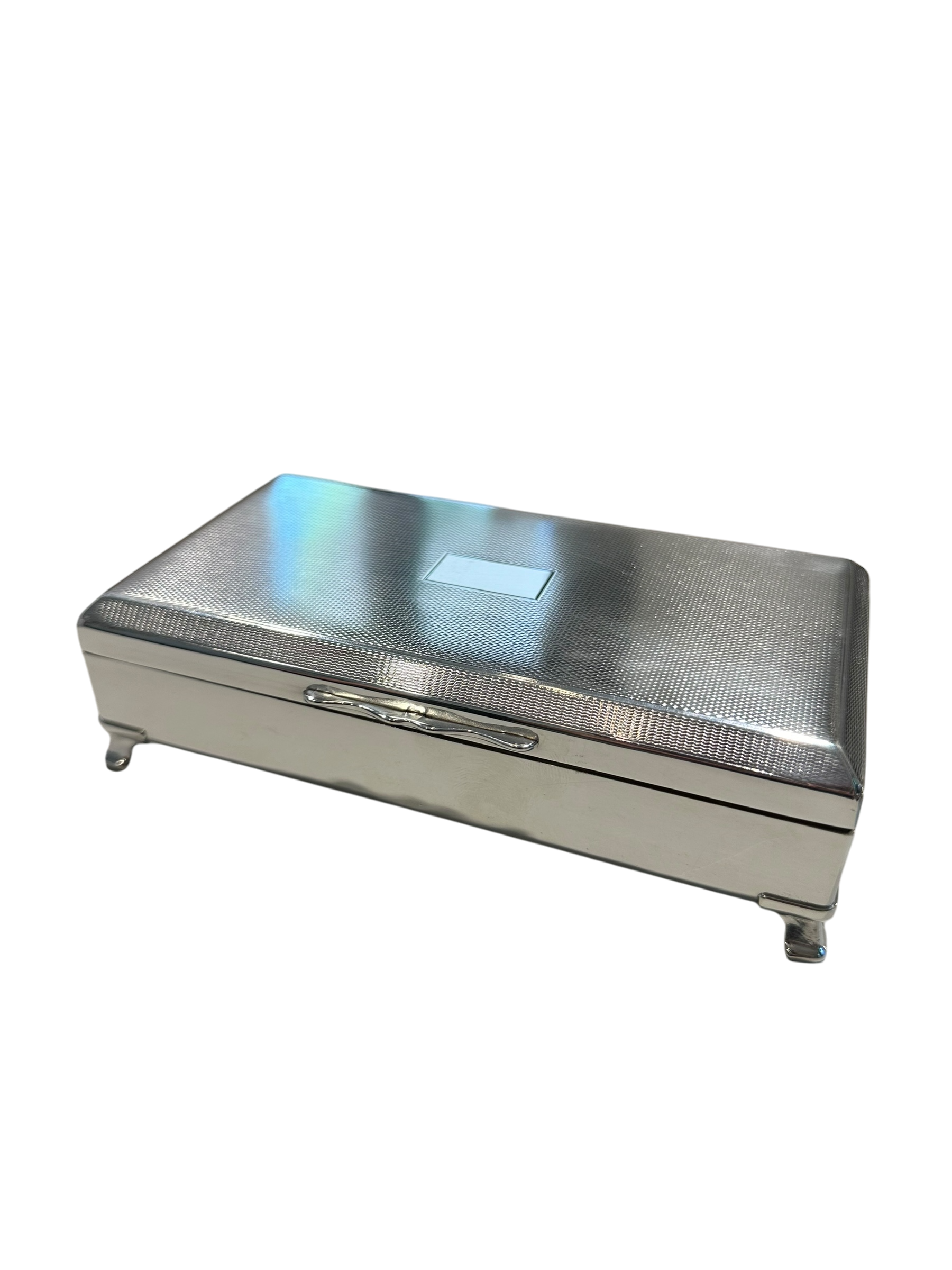 “Our silversmith lines them w/new wood for us - both of these boxes have a rectangular badge that can be engraved.”